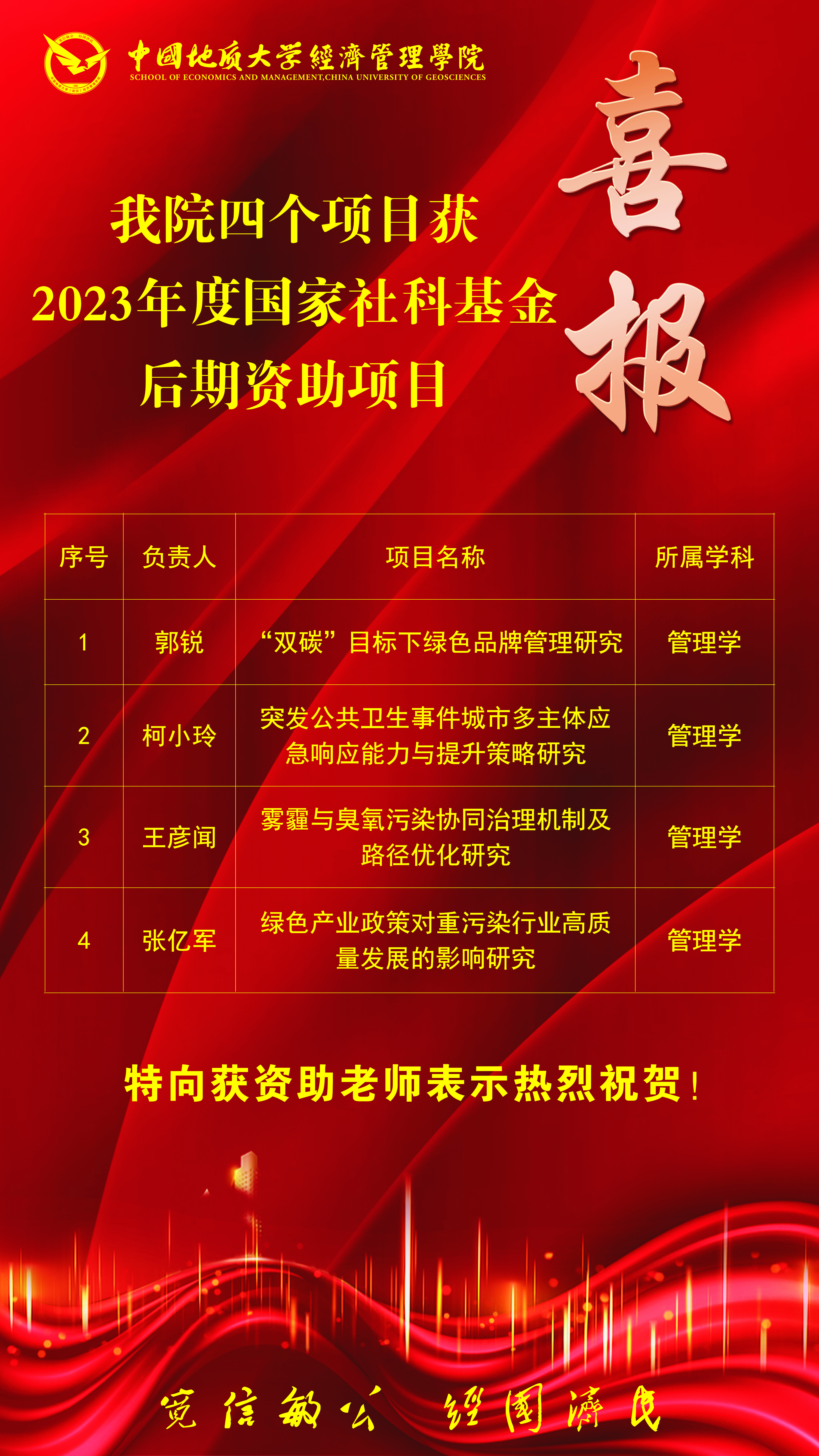 (通讯员 胡松琴)2023年11月15日,全国哲学社会科学工作办公室发布《2023年度国家社科基金后期资助项目和优秀博士论文出版项目立项名单公布》,伟德国际官网 共有四个项目获得了后期资助立项。