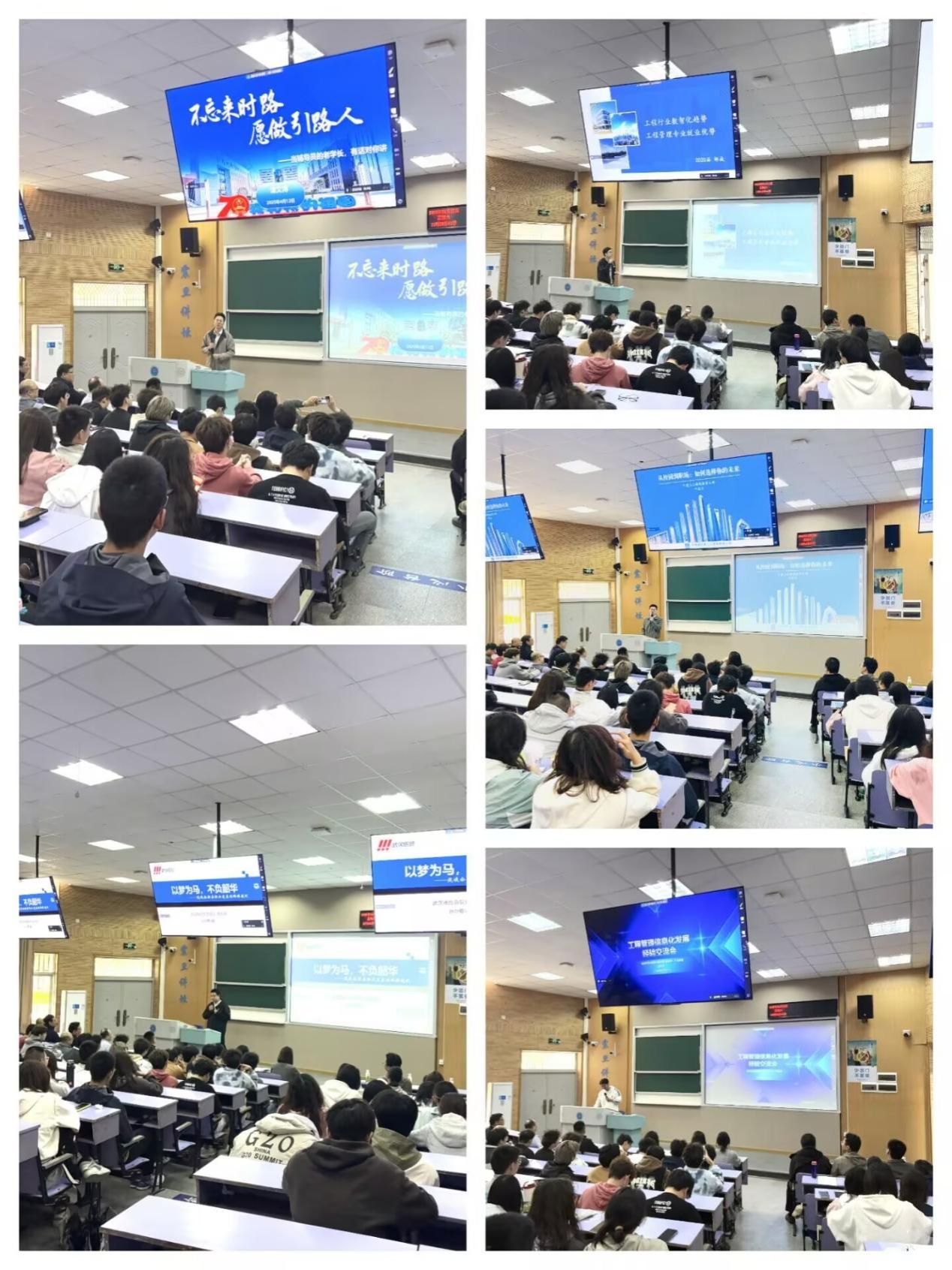 支部书记孙涵主持会议,系副主任丁丽萍介绍了工程管理专业的课程设置与就业前景,强调其“工程信息化”特色,并与信管专业进行对比,鼓励学生理性选择专业。专业教师柯小玲通过真实数据,分析了工程管理专业的就业优势,增强学生信心。