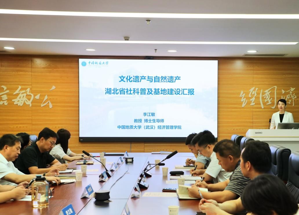 6月27日上午,省社科联党组成员、秘书长许巍一行莅临我院文化遗产与自然遗产湖北省社科普及基地开展走访调研。省社科联科普部主任徐维洲、学院党委书记杨昌锐、校科发院副院长兼伟德国际 副院长郭锐、校科发院人文社科办公室主任姜珊,学院李记亮副书记、郭海湘教授、团委书记努尔夏提·居勒提、基地负责人李江敏教授以及基地代表刘晶晶、肖拥军、柴海燕参加调研座谈。