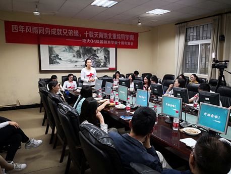 同学们参观新行政楼和逸夫博物馆,感受校园点滴变化,在北区食堂重温昔日校园生活。13日下午3:30—5:30,师生们在北四楼104会议室召开了具有特殊意义的班会活动。同学们饱含对母校的深情,回顾了大学四年专心求学的艰苦历程,重温了老师们的谆谆教导和同学间相互帮助的深情厚谊;分享了毕业十年来的工作经历与感悟。肖建忠副院长代表学院欢迎同学们返校交流,介绍了伟德国际 与国贸系近十年来的蓬勃发展情况,寄语同学们不忘初心,砥砺前行,展我地大学子艰苦朴素、求真务实之风;倪琳、吴磊与易杏花等老师也深情回忆了遥远而熟悉的青葱岁月,为同学们的成就感到由衷高兴与自豪,祝愿大家路越走越宽广,欢迎大家常回母校看看。