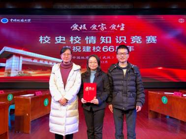 (通讯员周玲摄影王萍)2018年12月8日下午,我校校史校情知识竞赛决赛在校工会综合厅举行。我院由邵红梅、张京和刘保山三位青年教师组成的代表队于12月6日闯入此次决赛,并在比赛中为学院捧回三等奖荣誉。此次校史校情知识竞赛是校工会举办的“爱校爱家爱生”系列活动之庆祝建校66周年的重要活动之一,旨在以知识竞赛的形式促进广大教职工学习和了解我校历史沿革、校园文化、治学理念、发展现状和、发展愿景等。赛前,邵红梅、张京和刘保山三位青年教师以“知校爱校,争创佳绩”为口号,利用业余时间对相关知识点进行了认真充分的准备,在比赛中表现沉着自信,勇于挑战,为学院添光增彩!