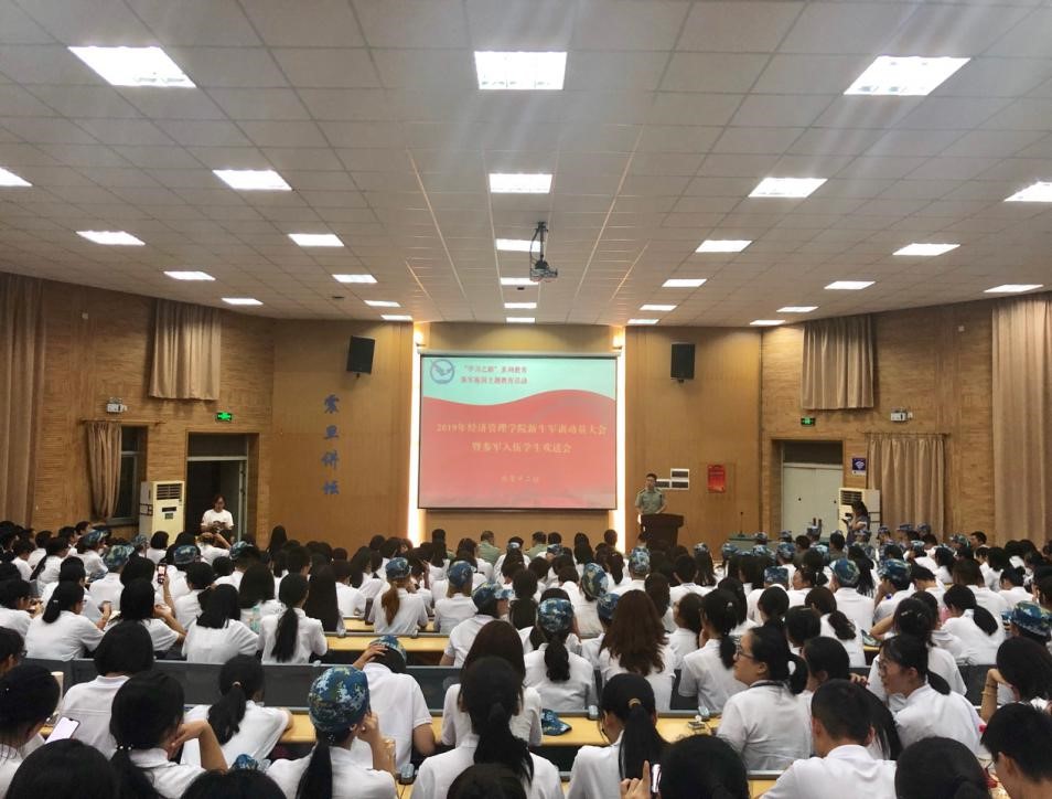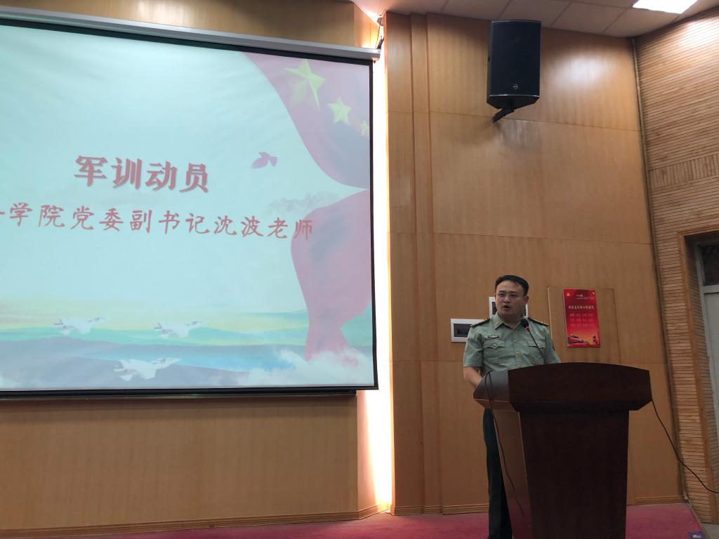2019年9月5日19:30,伴随着振奋人心的征兵入伍宣传片,伟德国际官网 2019级新生军训动员大会暨参军入伍大学生欢送会在教三楼109正式开幕,这代表着一年一度的新生军训正式开始,也象征着我院为国防事业输送的新鲜血液——新一批3名参军入伍大学生即将正式进入军旅生活。本次大会由田昆老师主持,保卫处副处长单红峰、学院党委副书记沈波出席,2019级全体辅导员老师及新生参加。