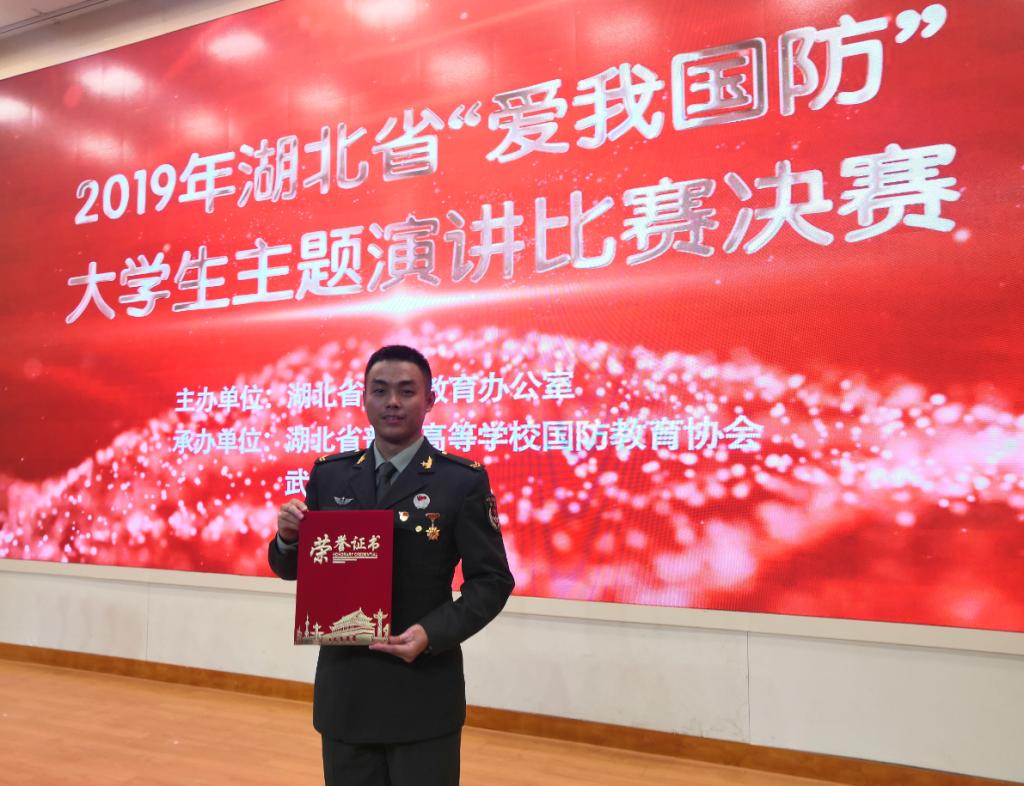 据悉,2019年湖北省“爱我国防”大学生主题演讲比赛由湖北省国防教育办公室主办,省普通高等学校国防教育协会和武汉理工大学承办,共有来自全省23所高校的68名学子参赛。