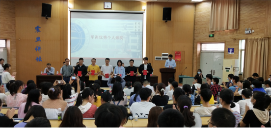 随后,肖建忠副院长宣读《2020年新生军训优秀学员表彰决定》。并由副院长肖建忠、於世为、程胜、王广民为军训优秀学员颁发荣誉证书给与鼓励。