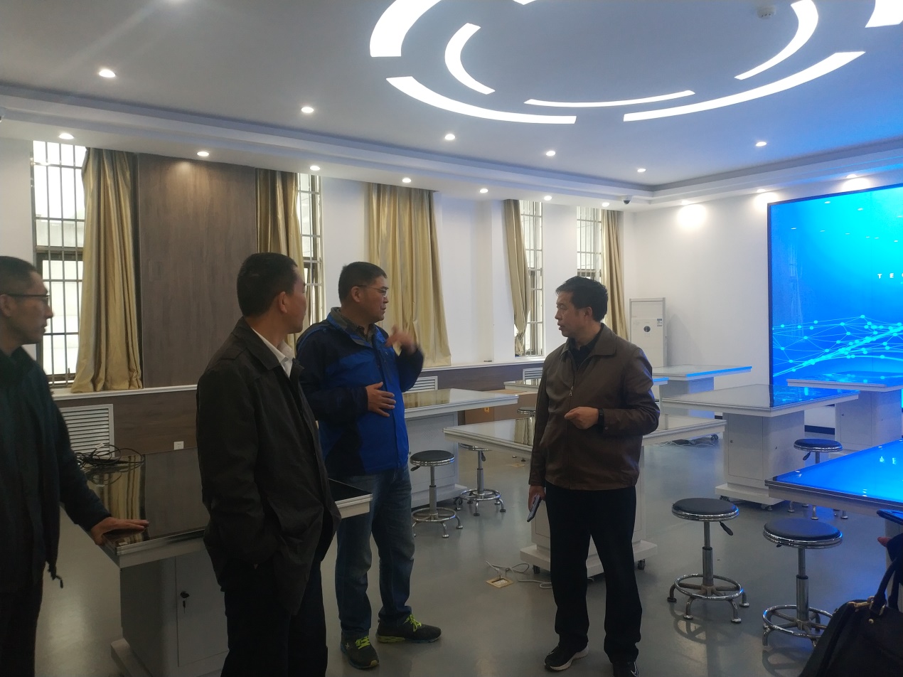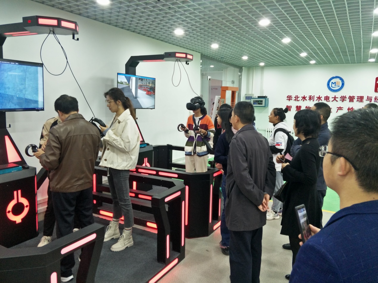 华北水利水电大学管理与经济学院院长李纲教授带领我院一行实地参观并讲解了人工智能测量实验室、商业行为测量实验室、新商科VR仿真沙盘综合实验室、智慧物流生产性仿真实验室、财务共享中心、国际商务与金融实验室等实验室的具体内容。