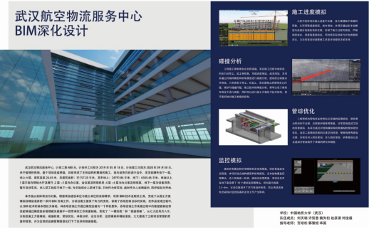经过激烈争夺,工程管理专业两支代表队都取得了优异的成绩。其中由林腾、郭凯波、刘祥虎、雷思敏、陈星宇组成的代表队提交的作品“武汉机场物流中心建造与信息管理平台”获得大赛一等奖,由刘天瑞、刘俊毅、许哲惠、魏矢初、赵彦潇组成的代表队提交的作品“武汉航空物流服务中心BIM深化设计”获得三等奖。