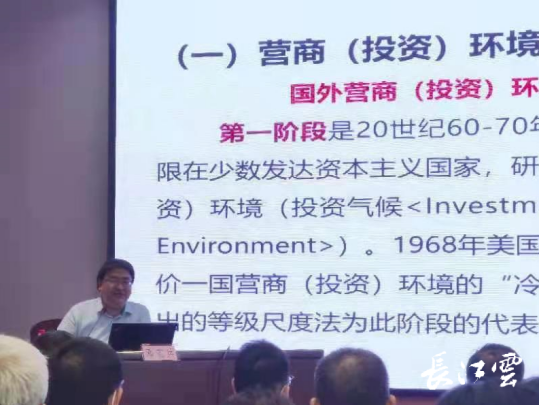 (通讯员 王彦闻)9月10日上午,湖北省优化营商环境观察员培训班在武汉举行。我院国贸系邓宏兵教授为观察员做了题为《优化营商环境:理论、政策与实务》的专题辅导报告,受到了观察员的一致好评。报告中,邓宏兵教授详细分析了湖北省营商环境近年来的状况,并一针见血地指出了当前省内营商环境所面临的问题。邓教授从专业角度出发,结合经济学理论分析了湖北省营商环境建设的重要性和意义;指出要提升湖北省的核心竞争力,前提和基础在于优化营商环境;今后需继续加强政策和理论研究,转变政务服务理念;立足区域优势,打造诚信公平的经营环境,促进湖北省经济高质量发展。