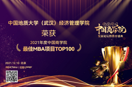 (通讯员 张嘉琦)2021年12月10日,MBAChina与《经理人》杂志联合主办的“2021中国商学院发展论坛暨教育盛典”云端圆满举行!本次论坛邀请了全国知名商学院院长进行主题分享,探讨未来商科教育发展趋势,聚焦新型商科人才培养模式,共同传递商学院成长力量。在会上,“2021年度中国商学院暨MBA项目系列榜单”相继揭晓,全国共有200多家商学院共同参与各类奖项的角逐。最终,韦德博彩-韦德博彩官网 MBA项目凭借其优秀的教学质量,独特的教学理念和丰硕的教学成果,入围2021年度中国商学院“最佳MBA项目TOP100”奖项、中国地质大学(武汉)MBA资源型企业经营管理特色项目荣获2021年度中国商学院“特色MBA项目”奖。