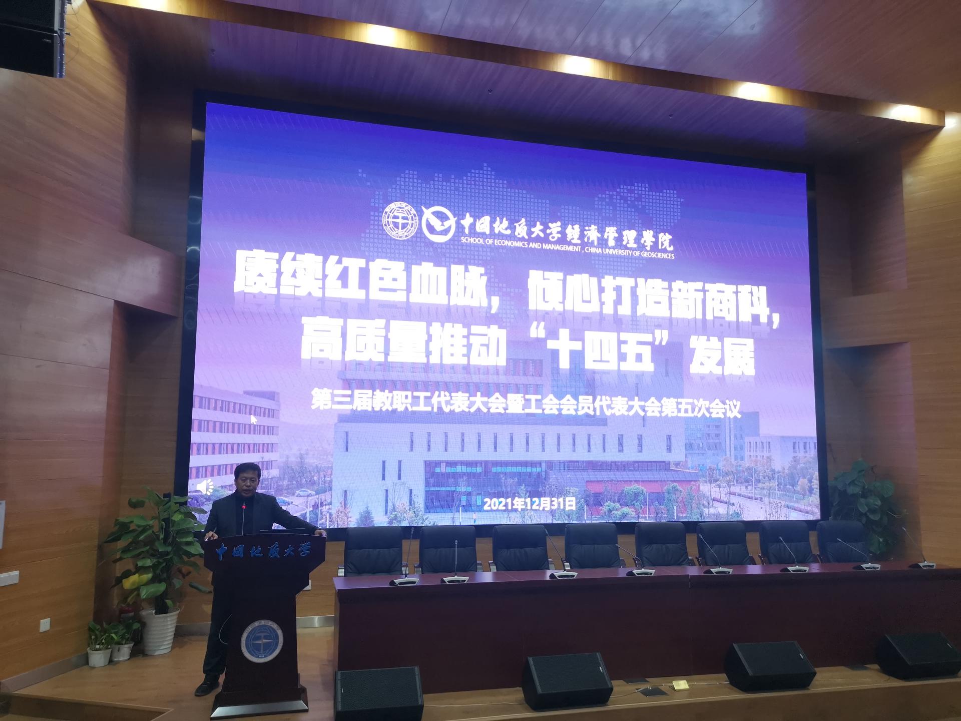院长杨树旺同志代表学院党政班子从党的建设、学科与专业建设、人才培养与学生工作、科学研究与社会服务、文化建设与工会工作等方面回顾了学院在2021年各项工作的开展情况,实事求是地总结了学院在“十四五”开局之年取得的各项成绩,分析了学院发展中存在的问题和不足,从加强党的建设、加强人才引育、加强学科建设、加强课程思政、加强能力培养、深化国际合作、完善经管大楼建设、强化学院文化建设等方面提出了新的一年学院发展建设的方向、任务、措施和路径。报告是进一步落实我院“十四五”规划的行动纲领,必将对我院发展起到承前启后的影响。随后,院长杨树旺同志还向大会作《2021年度财务工作报告》。