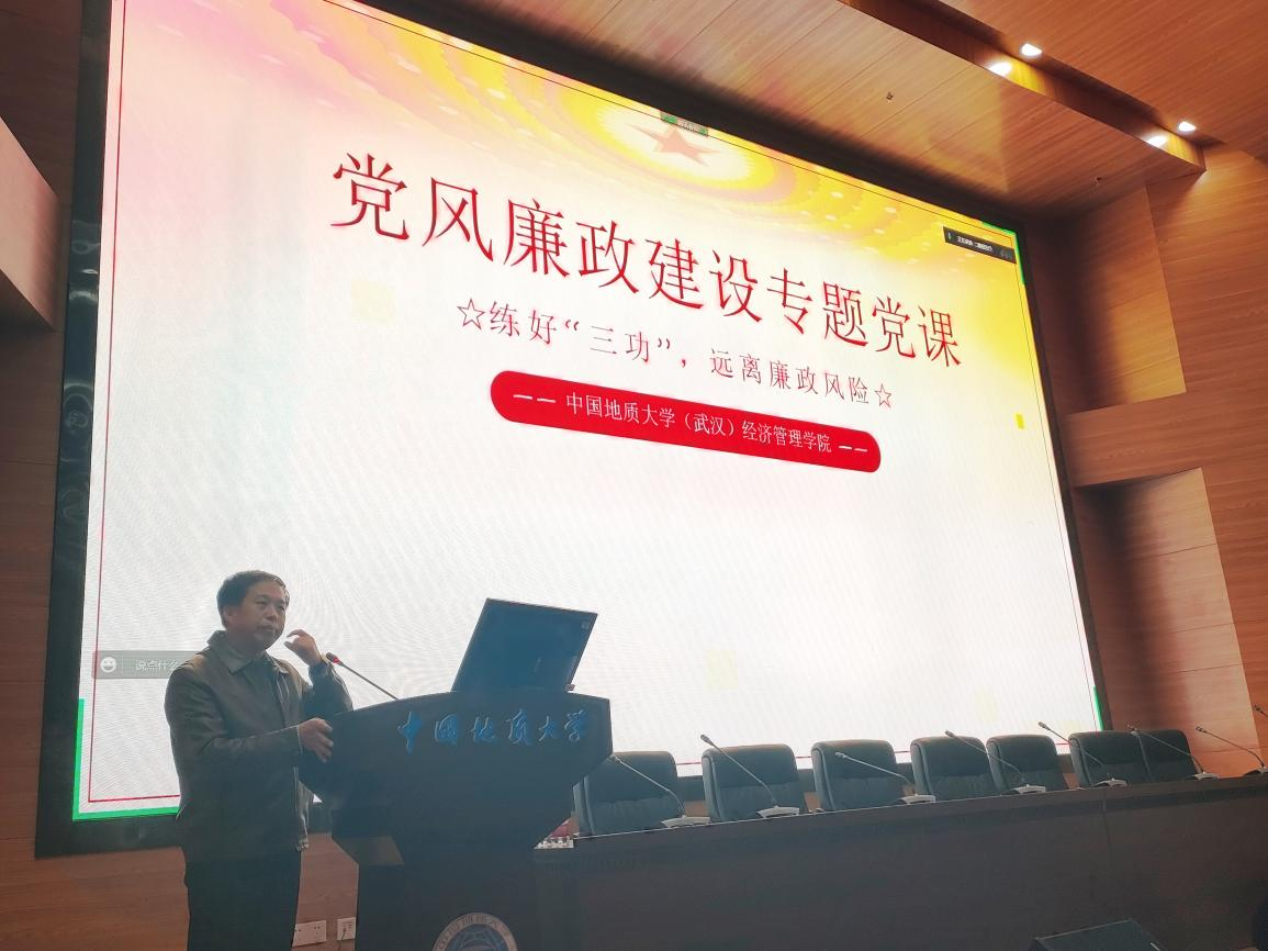 (通讯员:余甫文鑫)为深入推进“清廉学校”“清廉地大”“清廉经管”建设实施方案,落实立德树人根本任务,营造“卓越、和谐、幸福”的院风,推进廉洁教育进课堂,2022年10月14日,伟德国际官网 党风廉政建设专题党课在经管楼二楼报告厅举行,学院党委书记杨昌锐讲授专题党课,学生党建工作辅导员蔡杨主持。