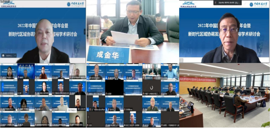 为庆祝党的二十大召开,深入探讨走向共同富裕的区域协调发展战略,10月30日,由中国区域经济学会、中国地质大学(武汉)主办,韦德博彩-韦德博彩官网 、中国区域经济学会区域创新专业委员会、中国地质大学(武汉)区域经济与投资环境研究中心、湖北省区域创新能力监测与分析软科学研究基地承办,中国社会科学院西部发展研究中心、区域经济评论杂志社协办的“2022年中国区域经济学会年会暨新时代区域协调发展与共同富裕学术研讨会”隆重召开。此次会议以“线上+线下”方式举行,来自全国各地众多高校和科研机构的1100余位专家学者参加了此次会议。