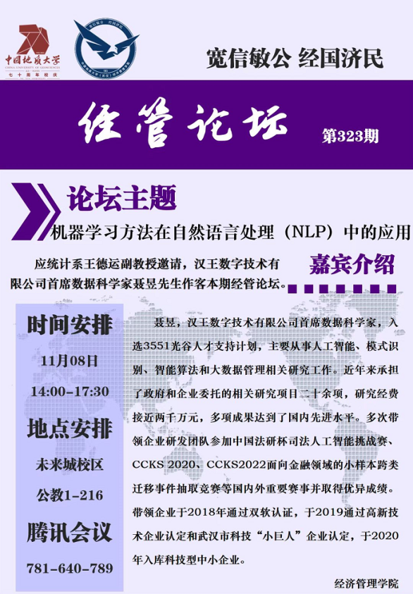 为了解行业前沿,进一步提高学生的研究创新能力、开拓研究视野,统计系王德运副教授邀请武汉汉王数据技术有限公司首席数据科学家聂昱先生做客第323期伟德论坛。