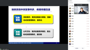 10月28日下午2:00,北京交通大学吴建军教授为我校师生做了题为“城市轨道交通应急运营管理”的学术报告。吴建军教授从理论、具体问题、应用场景及操作系统四个方面全方位、多角度地展示了轨道交通所面临的安全问题及解决措施;接着,又从突发事件的种类、需求管理、调度优化及客流疏散四个方面,由浅入深地讲解了轨道交通中突发事件的应急管理问题。最后,吴建军教授从地铁结伴出行识别、熟人网络病毒传播及大规模地铁网络疫情传播等视角,展示了轨道交通管理领域的一些前沿成果。本次会议共吸引了80余位师生参加,吴建军教授的报告令参会师生深受启发。