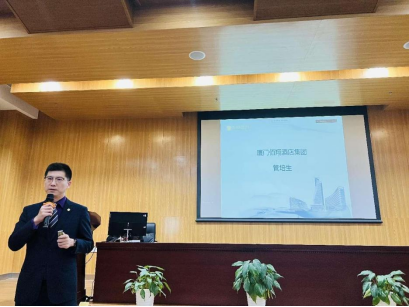 随后,厦门翔业集团人力资源部罗烨经理、上海华住集团谢盟旭经理分别介绍了各自企业的情况,并就管培生的培养计划和流程进行了详细讲解,为同学们提供了一系列实习和就业岗位。