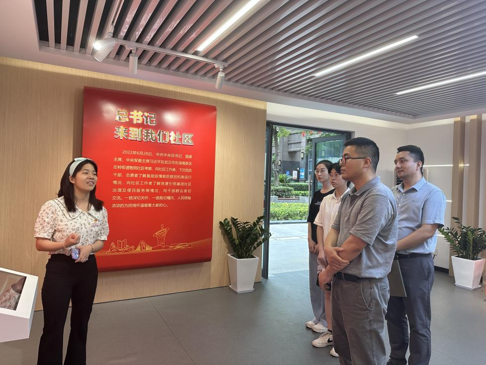 (通讯员 刘佳、李宜璋)6月5日下午,伟德国际官网 党委副书记李少杰、团委书记努尔夏提·居勒提带领团学代表、全国“两弹一星”宣讲团成员代表走访左岭街道智苑社区,深入学习习近平总书记2022年6月28日在武汉考察时的重要讲话精神,推进学习贯彻习近平新时代中国特色社会主义思想主题教育走深走实。进一步强化学院与智苑社区地合作联系,引导学生走进基层一线,弘扬志愿奉献精神。智苑社区团支部书记金成静,党建专员李梦蝶,光谷壹新社工项目主管覃敏姣、熊南叶及社区干事参加座谈和“志愿服务实践基地”挂牌仪式。