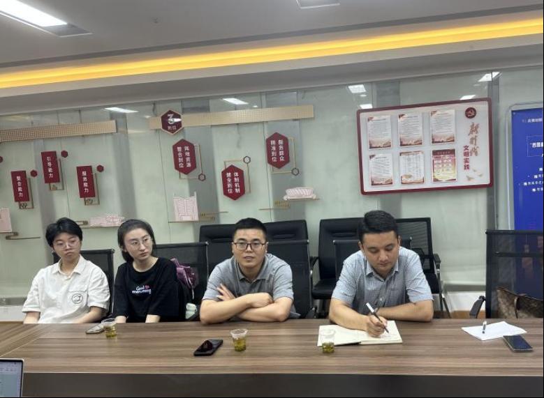 光谷壹新社工项目主管覃敏姣介绍了社区暑期托管班等项目计划,提出招募志愿者和助教等诉求,并高度肯定了我院志愿者在学雷锋月等活动中服务社区工作的积极表现,希望继续深化合作开展系列项目。努尔夏提·居勒提老师与工作人员就项目对接进行了详细交流,并介绍了我院“经鹰少年”宣讲队、启明星盲校支教团、经鹰宣讲团、志愿者工作部等发展情况,表达了推动志愿服务和社会实践进社区的期待。