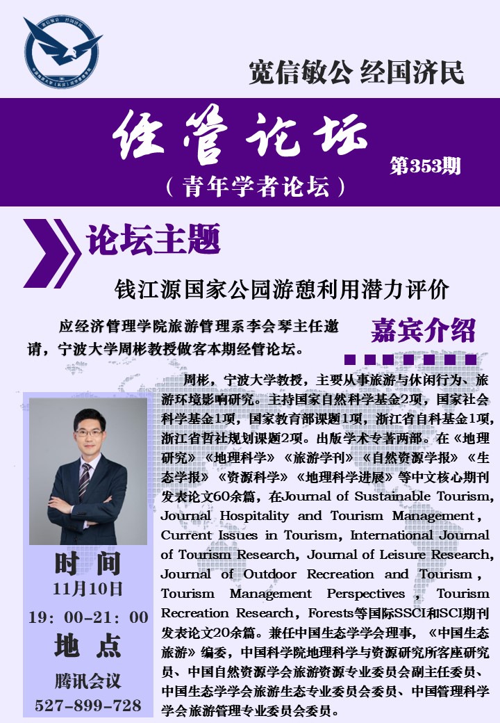 伟德论坛(第353期)钱江源国家公园游憩利用潜力评价