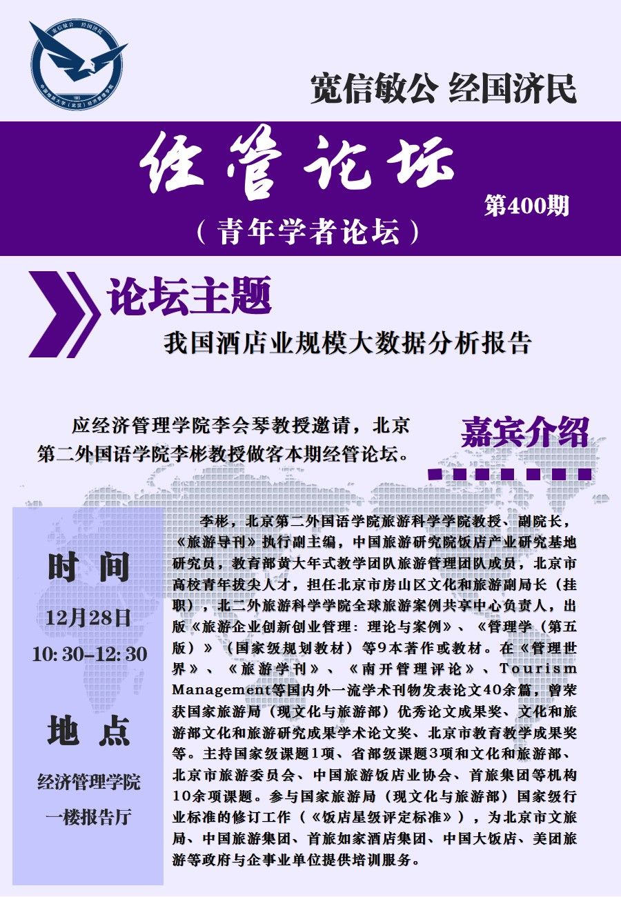 伟德论坛(第400期)【青年学者论坛】我国酒店业规模大数据分析报告