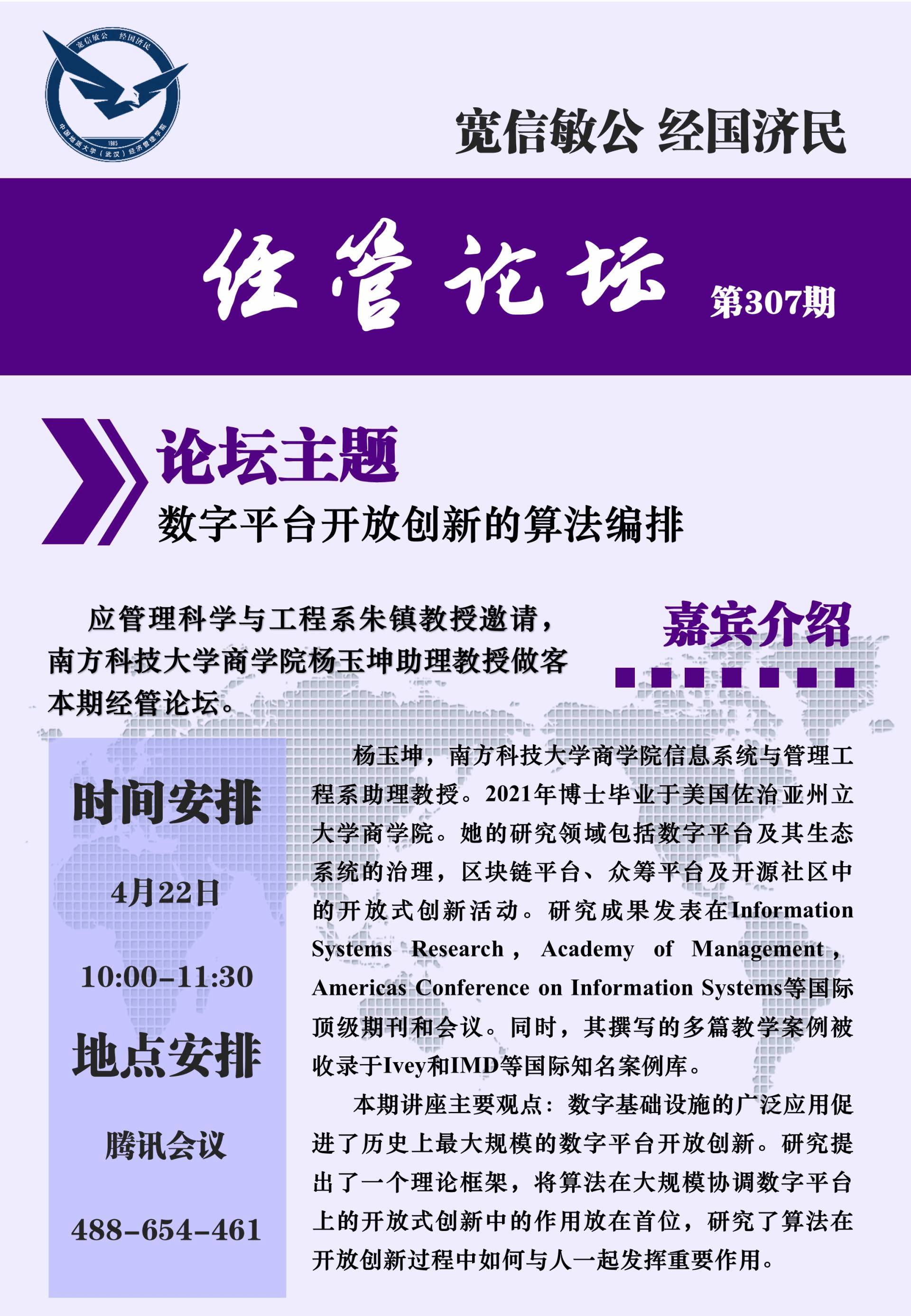 伟德论坛(第307期)数字平台开放创新的算法编排