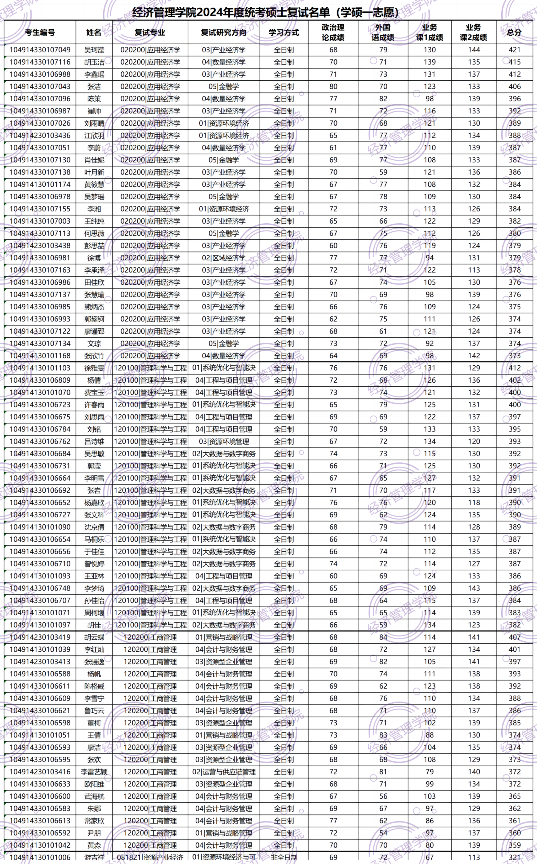 附件1:伟德国际官网 2024年度统考研究生复试名单(一志愿)_统考硕士初试成绩