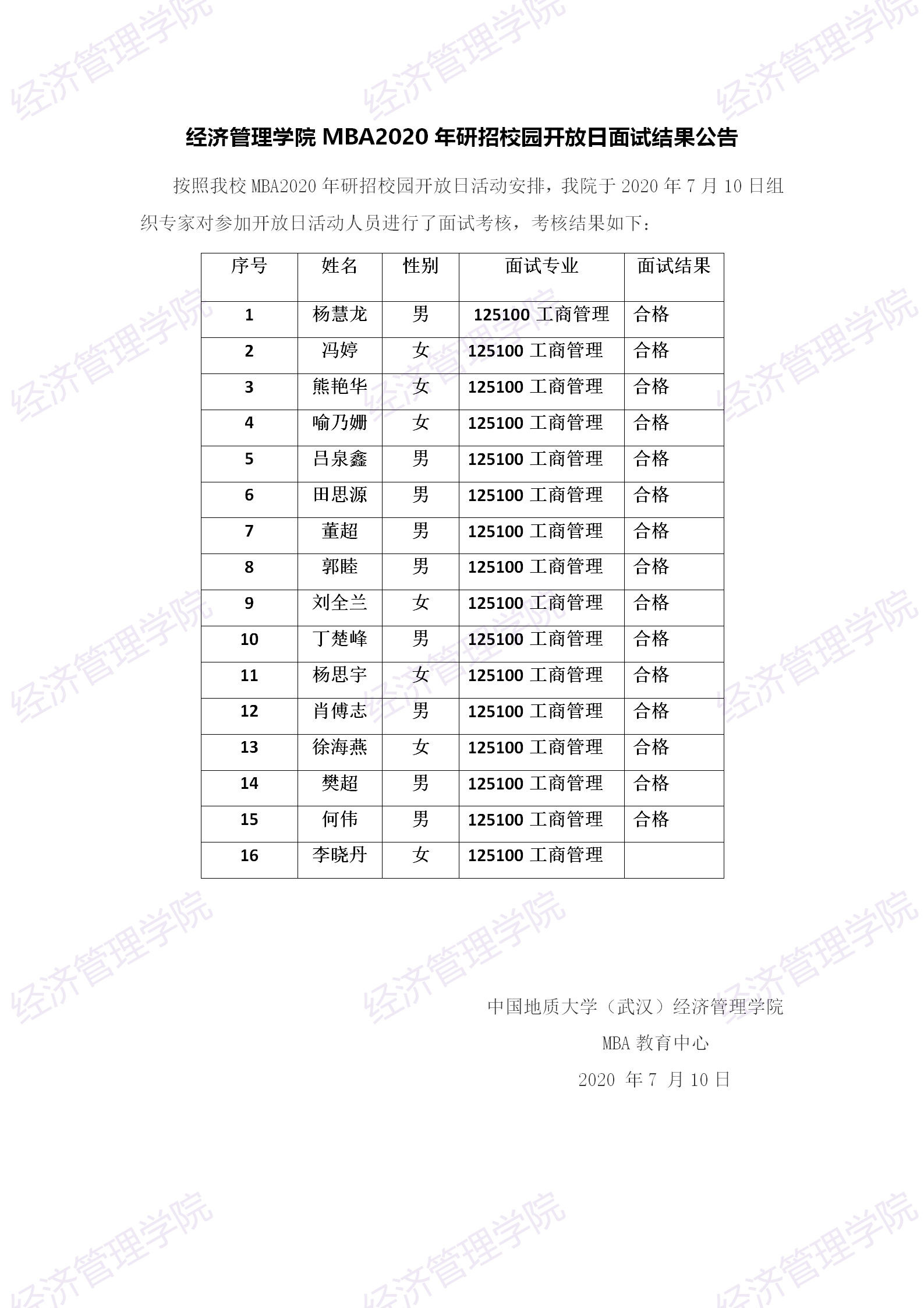 伟德国际官网 MBA2020年研招校园开放日面试结果公告