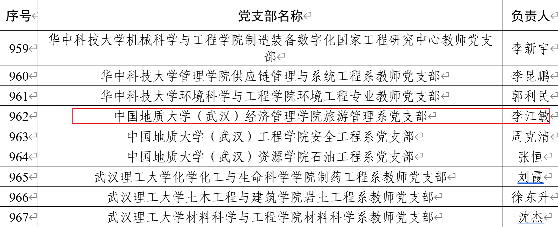 日前,教育部办公厅公布《关于全国高校“双带头人”教师党支部书记“强国行”专项行动团队名单的公示》,我院旅游管理系党支部书记李江敏作为团队负责人入选。