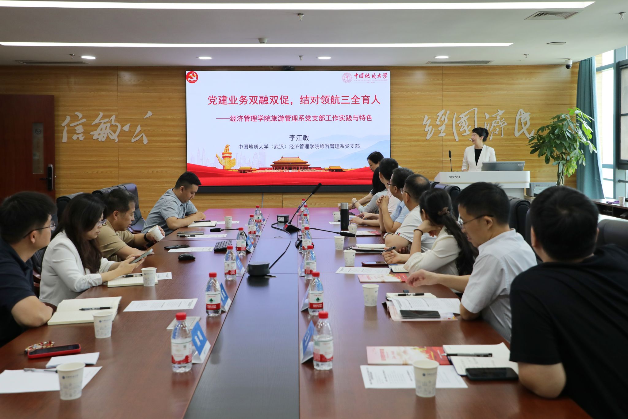 随后,我院旅游管理系党支部书记李江敏教授作《党建业务双融双促,结对领航三全育人——伟德国际官网 旅游管理系党支部工作实践与特色》专题分享,结合党支部书记“强国行”实践经历,详细阐述了党支部在党建与业务融合、结对育人等方面的工作经验和特色做法。