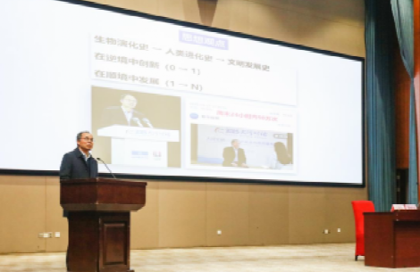 谢树成院士以“生命的常态——逆境中创新”为题,为本期地韵文旅讲堂带来别开生面的主题报告。谢院士从数十亿年前的生命起源开篇,系统梳理了生物演化与人类进化的历史进程,并结合地质勘探发现的实证资料,详细解读了地球史上三次生物大发展的核心特征,指出“灭绝并非终结,而是新生命崛起的序曲”。在此基础上,谢院士提出“逆境大于顺境是自然常态,逆境驱动创新是发展核心”的重要观点,并用恐龙灭绝与小型哺乳动物兴盛、微生物生存策略、爬行动物从水生到陆生的演化历程等,阐释了生命进化规律。谢院士还分享了在长江流域古环境与古文化重建研究中发现的“逆境创新”现象,并将宏大的生命演化规律与长江生态保护的现实相结合,让在场师生深刻理解了“逆境催生变革,创新引领发展”的深刻内涵。报告既是一堂科普课,更是一堂生动的思政课。