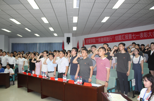为热烈庆祝建党98周年和建国70周年,引导全院师生党员踏寻党的奋斗之路、回顾伟大祖国走过的风雨历程、共同展望伟大事业的美好前景。2019年6月20日晚19:00,在学校党委的统一领导和部署下,伟德国际官网 七一表彰暨暑期学习之路主题社会实践动员大会成功举办。学院党委书记杨昌锐、学院党委副书记沈波、学工组全体教职工,经管学生会主席团代表、院团委学生代表,以及全体学生党员参加大会。