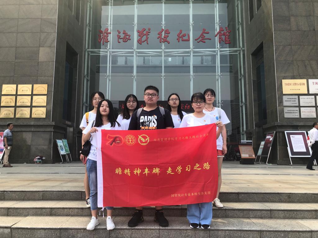 2019年,是新中国成立70周年,是中国共产党成立98周年,为深入贯彻习近平新时代中国特色社会主义思想,引导培养党支部成员重走革命之路,教育党员不忘初心、牢记使命,伟德国际官网 组建“寻宝经兵”社会实践团,开展学习之路暑期社会实践活动。学院国贸统计党支部组成“擎淮”分队,赴徐州开展活动。