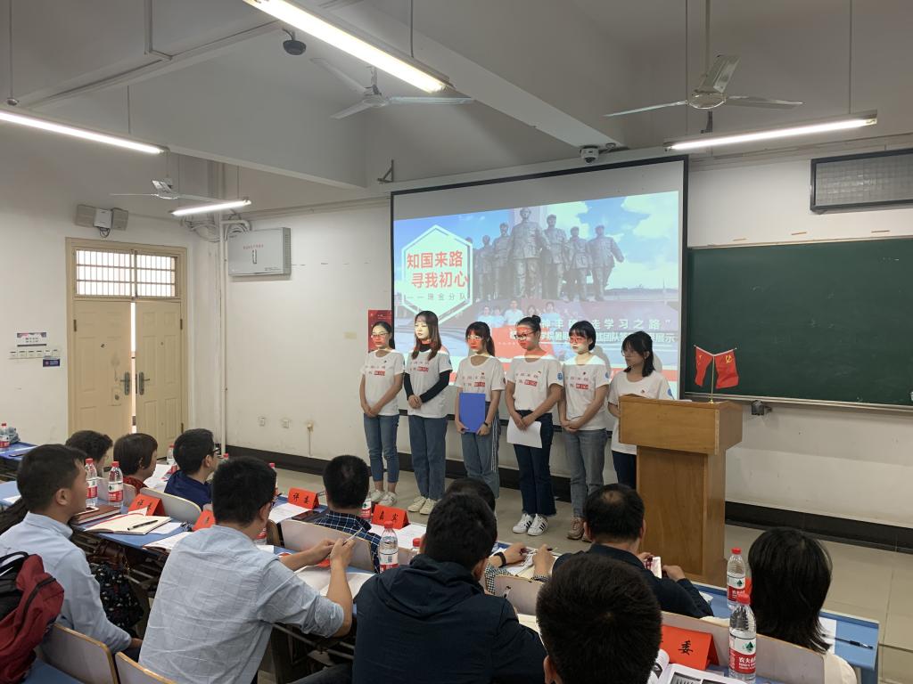 7支党员实践团围绕学习实践过程、成果以及宣讲思路进行展示汇报。其中,来自财管与会计专业本科生党支部的瑞金分队说道:“知来路,方能明去路;寻初心,才可担使命。中国共产党人的初心和使命从来都是在革命路上前赴后继,在创业路上栉风沐雨,在复兴路上实干兴邦。而我们,作为当代大学生,是时代之子,是国之栋梁,只有和党和国家同心同向,将小我融入大我,以我之口颂我之党、赞我之国、讲我践悟。”