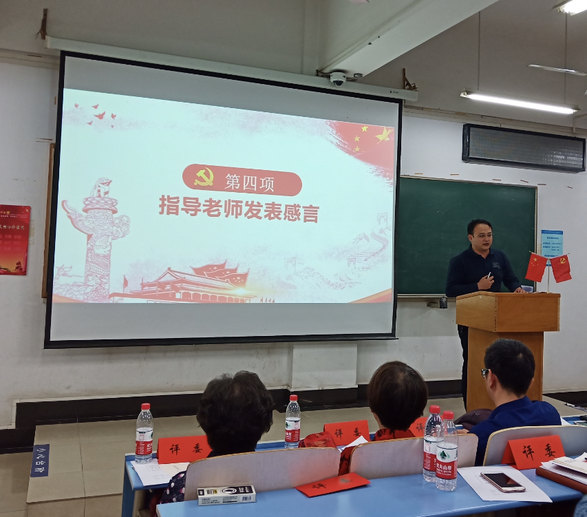 马克思主义学院吴东华教授从宣讲的逻辑思路、核心内容、主题立意三个方面对实践团进行指导点评,鼓励广大学生党员时刻牢记党员身份,立场鲜明讲政治,奋发有为勇担当,真正做到“在党爱党、在党言党”,始终牢记中国特色社会主义接班人和建设者的伟大历史使命。