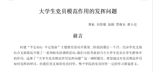 支部宣传教育力度强,影响范围大,效果明显。专题调研最终形成五份调研报告,对支部建设及学院发展均有裨益。主题教育及宣讲活动覆盖面广,主题教育活动参与人数达150余人;开展宣讲活动的6次,覆盖600余人次。另外支部还邀请积极分子、普通同学参与支部主题党日10余次。通过上述方法使宣传教育突出思想引领及理想信念教育,提升效果,坚定支部党员、积极分子及普通同学跟党走的决心。