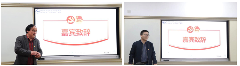 校图书馆馆长徐世球教授(左)、伟德国际官网 党委副书记李少杰老师(右)为活动致辞
