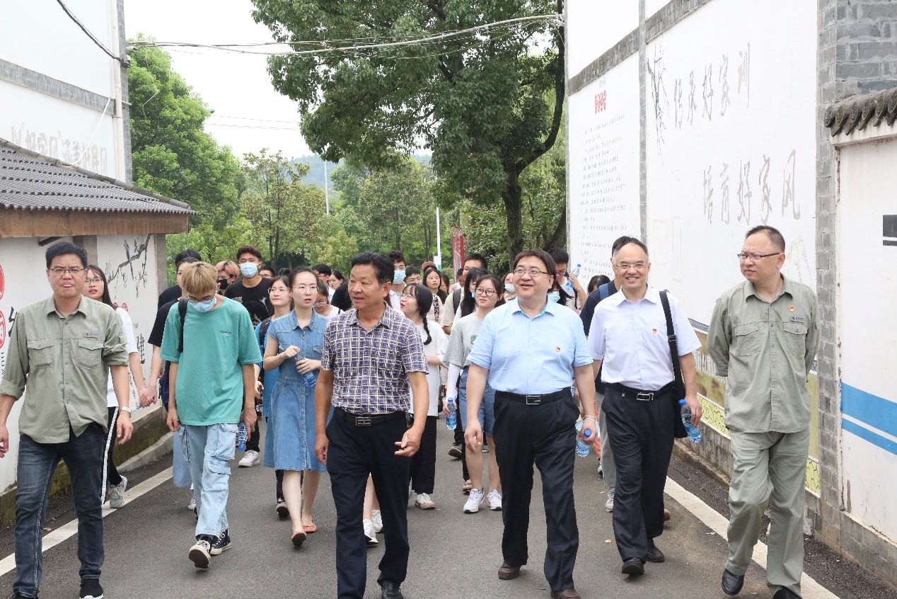随后,全体师生在蔡甸区黄虎村村支书的带领下,与蔡甸区供电公司党支部成员共同参观了黄虎村文创示范基地。近年来,黄虎村依靠自身优势,以推动美丽乡村建设、助力乡村振兴为目标,以知音文化为价值核心,传承荆楚文明,打造国内一流文化创意村。学生们兴致勃勃、饶有兴趣地参观了“悠悠山房文化艺术中心”、“云外艺术工作室”等文创品牌,深度了解品牌文化,感受到文化振兴带来的乡村文明。
