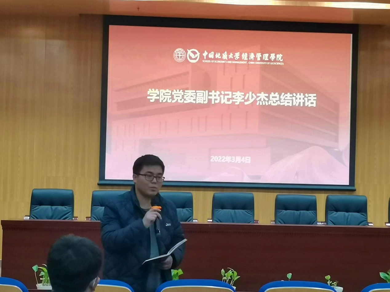 最后,学院党委副书记李少杰作总结讲话。李少杰高度肯定了各学生党支部在过去的一年中的工作成果和支部书记认真负责的工作态度,同时也指出学生党建工作存在的三点不足。一是学生支部建设同质化现象仍需改进,仍需充分挖掘和培育亮点工作,从而形成“一支部一特色”的工作格局。二是学生党支部样板培育力度和成效有待加强,学生党支部应充分理解新时代学校、学院党建工作的定位与要求,以突破性成绩打造样板支部,服务学校和学院中心事业发展。三是师生、本研支部联动仍要加强,学生党支部联动教工、本研贯通、共同发展的力度仍显不足。