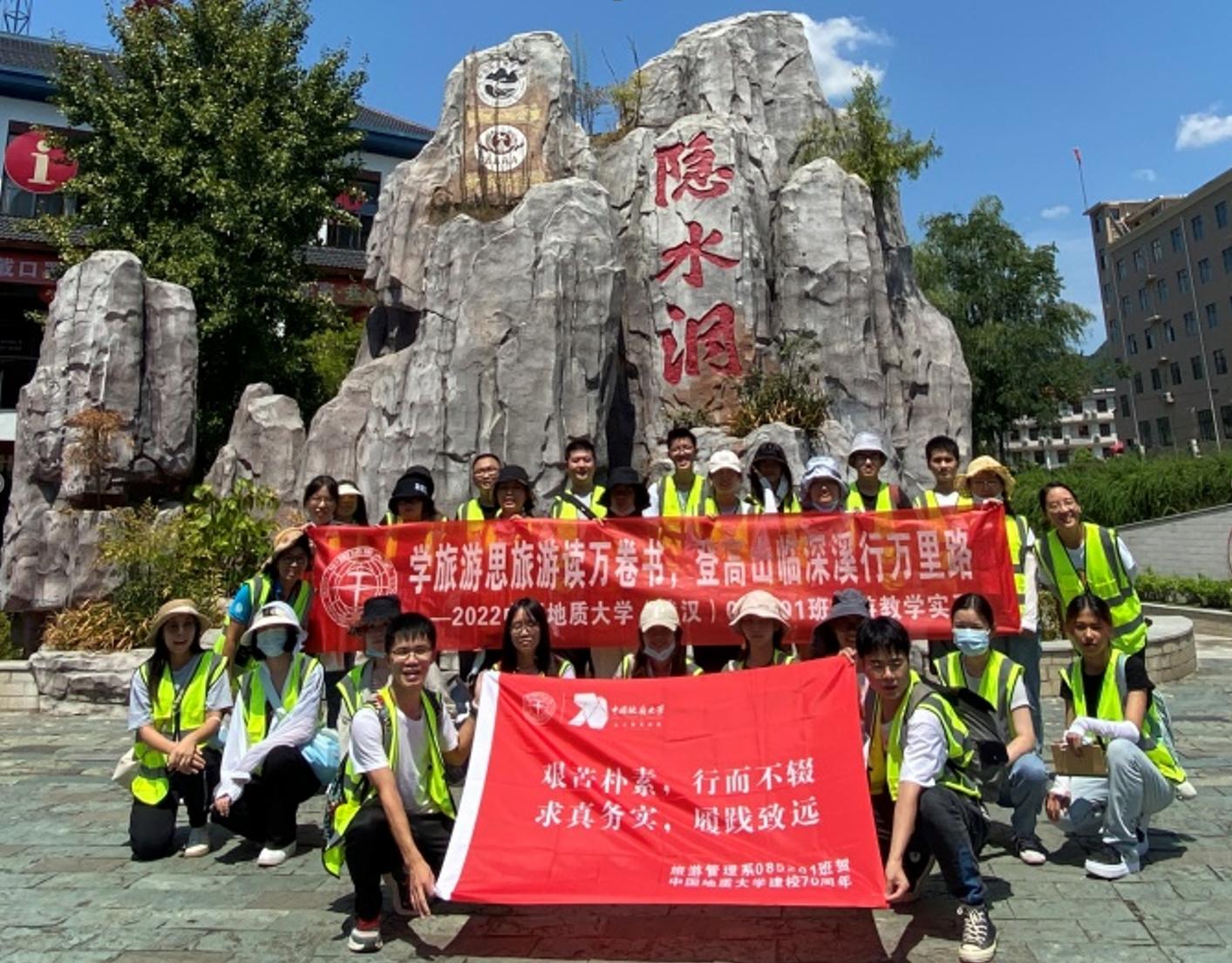 以学习、传承并发扬“艰苦朴素,求真务实”校训精神和伟德国际官网 的“宽信敏公,经国济民”院训精神作为实习课程思政教学的出发点,结合中国地质大学建校七十周年校庆,方案为本次实习确立了“艰苦朴素,行而不辍;求真务实,履践致远”的实习精神理念,引导同学们要在实习中,积极发扬校训精神,秉承求真,践行务实,在实习实践中理论联系实际,打好专业根基,在旅游成才路上行稳致远。并鼓励实习同学以脚踏实地的实习表现,为中国地质大学建校七十周年献贺。