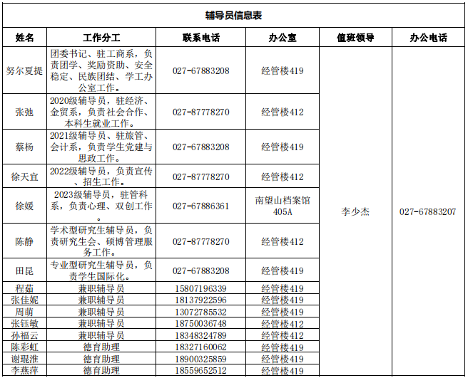 值班工作要求:1.走访宿舍,抽查学生夜间在校和宿舍安全文明情况,了解学生生活状态;2.走入教室、图书馆、自习室,了解学生学习状态;3.组织和参与学生活动,检查早操、论坛等出勤情况;4.开展谈心谈话,关注学生健康成长,帮助解决实际困难;5.学院领导检查组不定期抽查值班情况,切实压实值班责任。 伟德国际官网 学工组 2023年10月7日