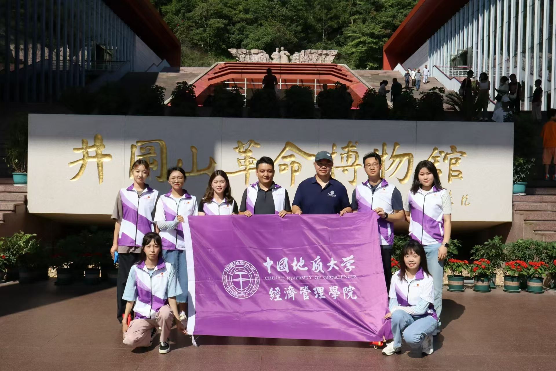 随后,实践团共同唱响了《一二三四歌》《没有共产党就没有新中国》《映山红》与《光荣啊,中国共青团》等红色歌曲,在歌声中赓续井冈山精神,在歌声中担当历史使命,在歌声中传承中国革命的信仰力量。紧接着,实践团成员分享了井冈山之行的感悟。冯涵瑞同学谈到,经过这几天在基地的统一学习培训,井冈山精神对于她而言,是在“实事求是、勇闯新路”中求真务实,在“艰苦奋斗、勇于胜利”中砥砺前行。张佳泋同学谈到,国防教育讲座让她不断思考国防和旅游的关系,近年快速发展的研学旅行也许将成为国防安全教育的另一有效途径。