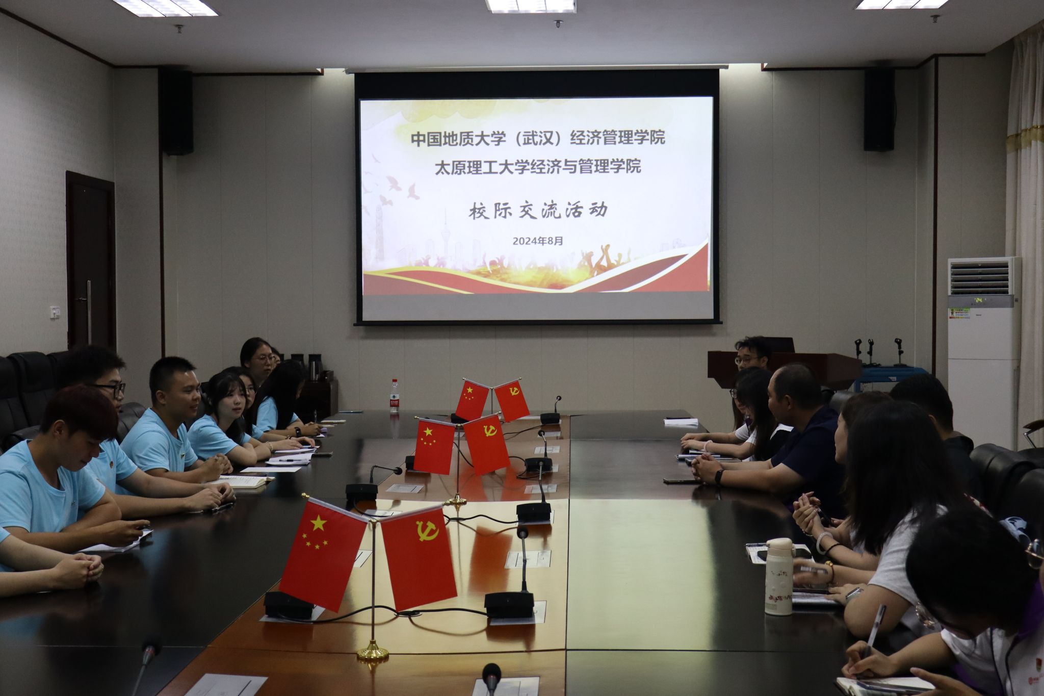 8月23日晚,“井冈红鹰”实践团与太原理工大学“经世济用”乡村振兴促进团进行座谈。双方基于文化旅游、团学工作、青年引领等方面进行了经验交流。两支团队对促进井冈山红色文旅产业融合进行了汇报展示,同时就特色校园文化活动、青年志愿者服务、宣传品牌打造等学生工作相关问题进行了探讨。本次交流促进了双方团队在专业实践及学生组织的互学互鉴中进一步成长。