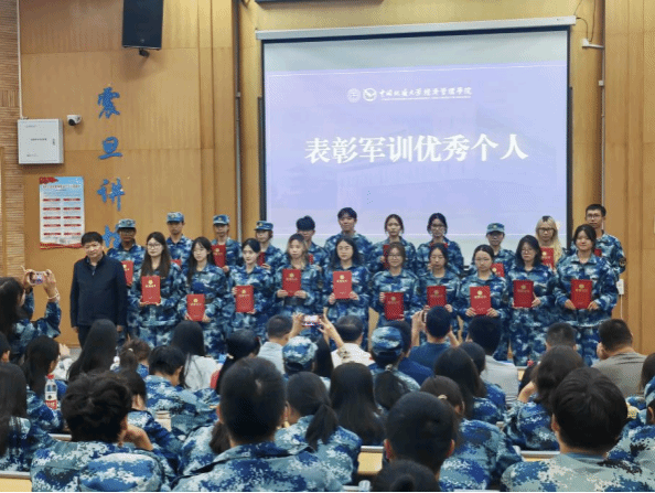 大会对军训期间表现优异的个人进行了表彰。副院长肖建忠、王广民为“军训优秀个人”颁发荣誉证书。在为期两周的军事训练中,男生军体拳虎虎生风,女生匕首操英姿飒爽,展现了伟德国际官网 2025级新生的良好精神风貌。
