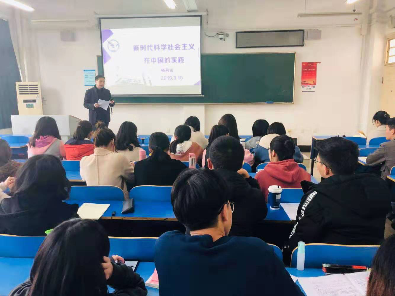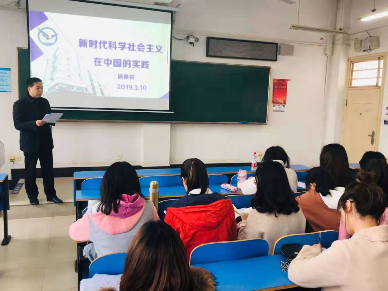 2019年3月10日下午2点,伟德国际官网 第九期发展对象培训班课程在北区综合楼208教室如期举行,学院党委书记杨昌锐以“新时代科学社会主义在中国的实践”为主题为学员授课,30余名学生党员发展对象参加党课。