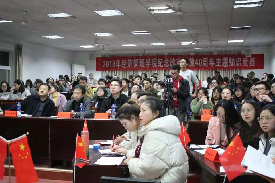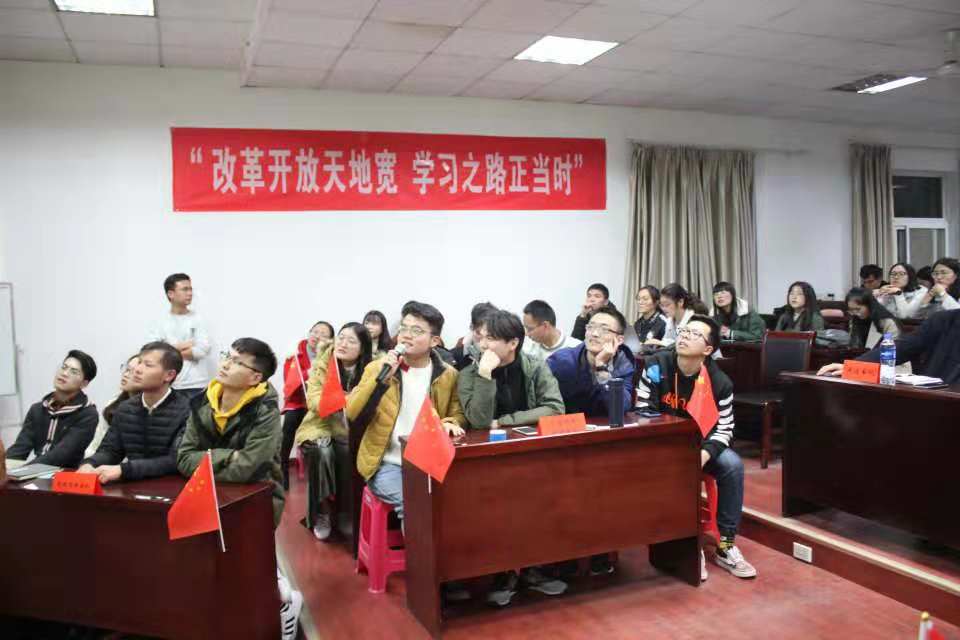 (学院党建办公室:王洁彬)2018年11月22日晚7:00,由伟德国际官网 党委主办、学院党建办公室承办的“改革开放天地宽,学习之路正当时”——纪念改革开放40周年主题知识竞赛活动在MBA楼208室如期举行。出席本次活动的嘉宾有:学院党委书记杨昌锐老师、学校党委组织部马洪福老师、学院党委副书记沈波老师、学院管理科学与工程系教职工党支部书记孙涵老师、学工组全体老师;全体学生党员到场观看学习。