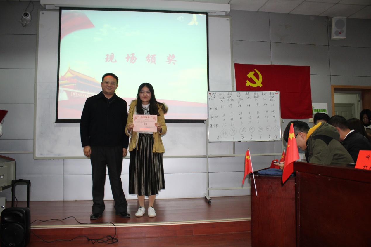 学院党委副书记沈波老师为获得第一名的队伍颁奖。