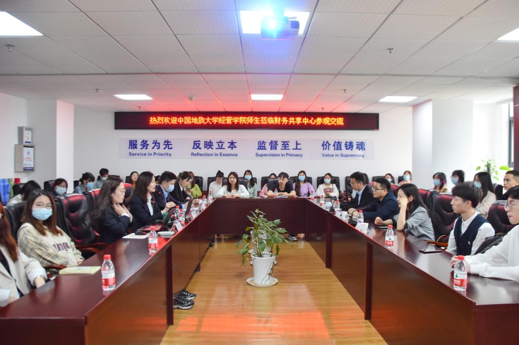 中交第二航务工程局财务共享中心党委副书记、纪委书记、工会主席雷敏及相关业务部门负责人热情地接待了学院师生,并带领师生参观公司办公场地,介绍了企业智能化、现代化的办公条件与环境。