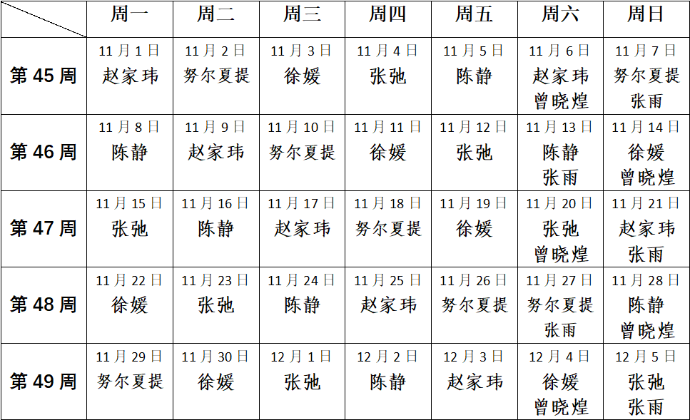 经管学工组2021年11月未来城校区值班安排