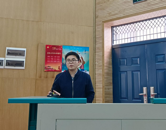 大会第一项,辅导员徐天宜作学情通报。徐老师从各班平均学分绩点、各科最高分和平均分、各班挂科人次等方面对2021级上学期期末考试的整体情况进行了介绍。希望同学们通过横向对比,明晰自身的学习效果,做到查漏补缺、查摆不足,持续探索,从而找到最适合自己的大学学习方法和状态。