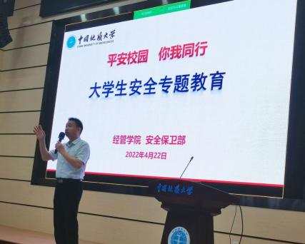 2022年4月22日,伟德国际官网 邀请学校安全保卫部有关同志,采用线上线下相结合的方式在全院本研学生群体中,全覆盖开展了大学生安全教育主题讲座,旨在进一步提高我院学生安全意识,尤其是防诈骗意识,全面做好学生教育引导工作,增强同学们的防诈骗意识和能力,避免各类案件再发生,让校园环境安全得到有力的保障。本次主题教育讲座由安全保卫部副部长彭冠军主讲,安全保卫部彭红进、邱鑫、张涛老师参加,学院团委副书记努尔夏提主持,全体2020级本研同学于公教楼208教室线下聆听,其余各年级同学通过地大视讯平台线上参与学习。