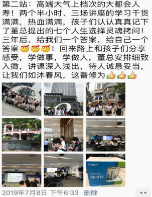 和学生一路走来,用学生的视角看实习,用学习的态度看企业,用感恩的心情看榜样,带队老师也在朋友圈第一时间记录了自己的心得: