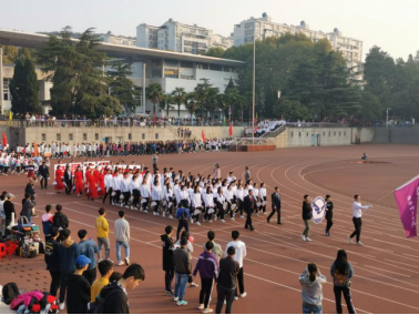 在11月8日的开幕式上,由我院师生组成的伟德国际官网 方阵步伐稳健,意气风发,昂首阔步走过主席台,亮相全校师生。“宽信敏公,经国济民”的口号,铿锵有力,赢得了阵阵掌声,展现了经管人追求卓越,奉献国家的信念和毅力。